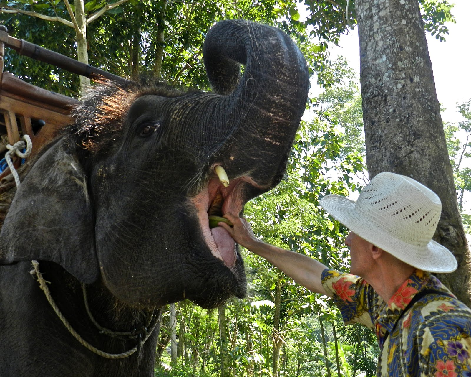 We went for a ride on an elephant! What fun! We had both done it as children, Don at the London Zoo and me at the Melbourne Zoo a kagillion years ago. It was so much fun to do it again. We were like a couple of five year olds. The ride lasted for about a half hour through the jungle and then through a pool of water so the elephant could spray itself. And us!